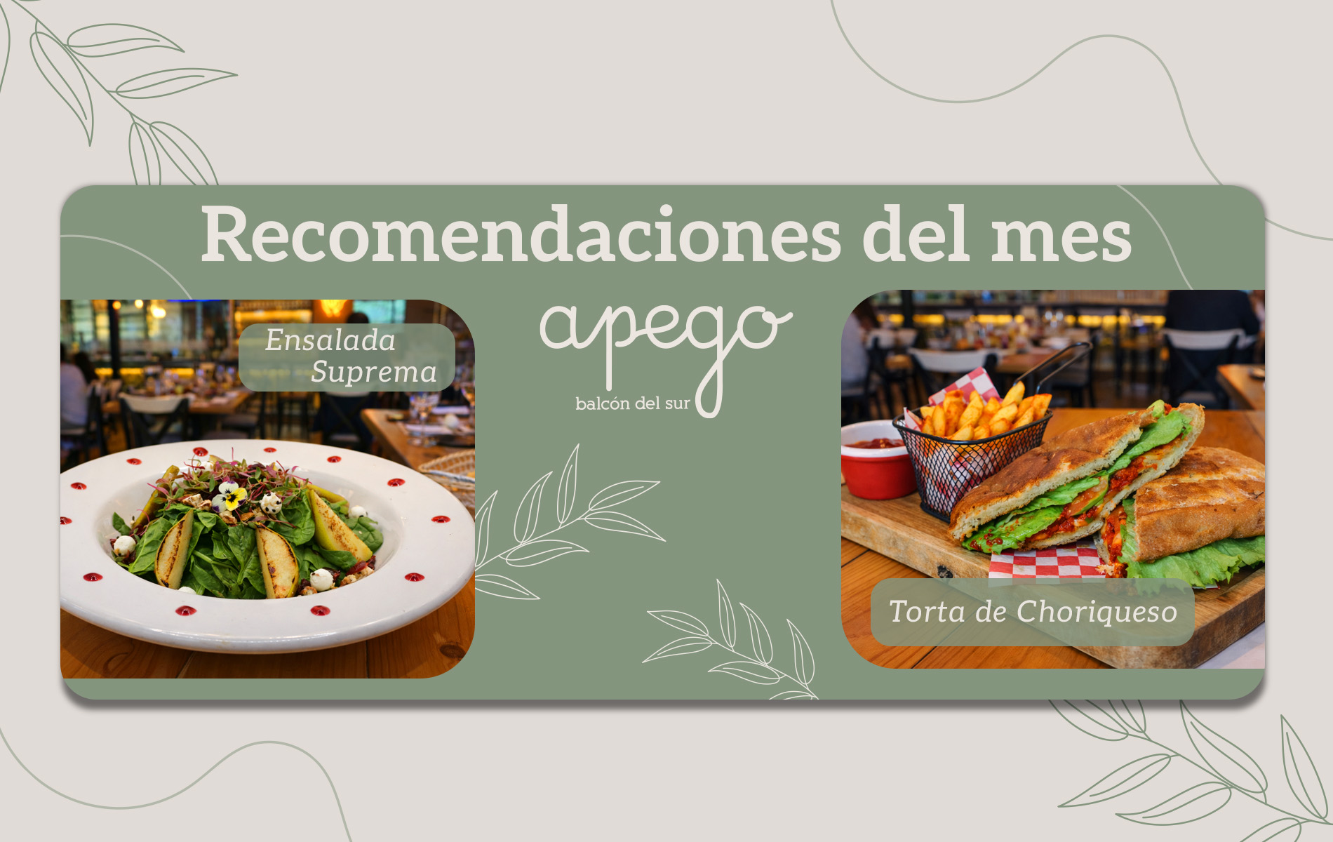 día. Ideal para un desayuno con amigas, una comida de negocios o drinks en la noche. Venir a Apego es disfrutar, pasarla rico y compartir con las personas que te hacen sentir bien.